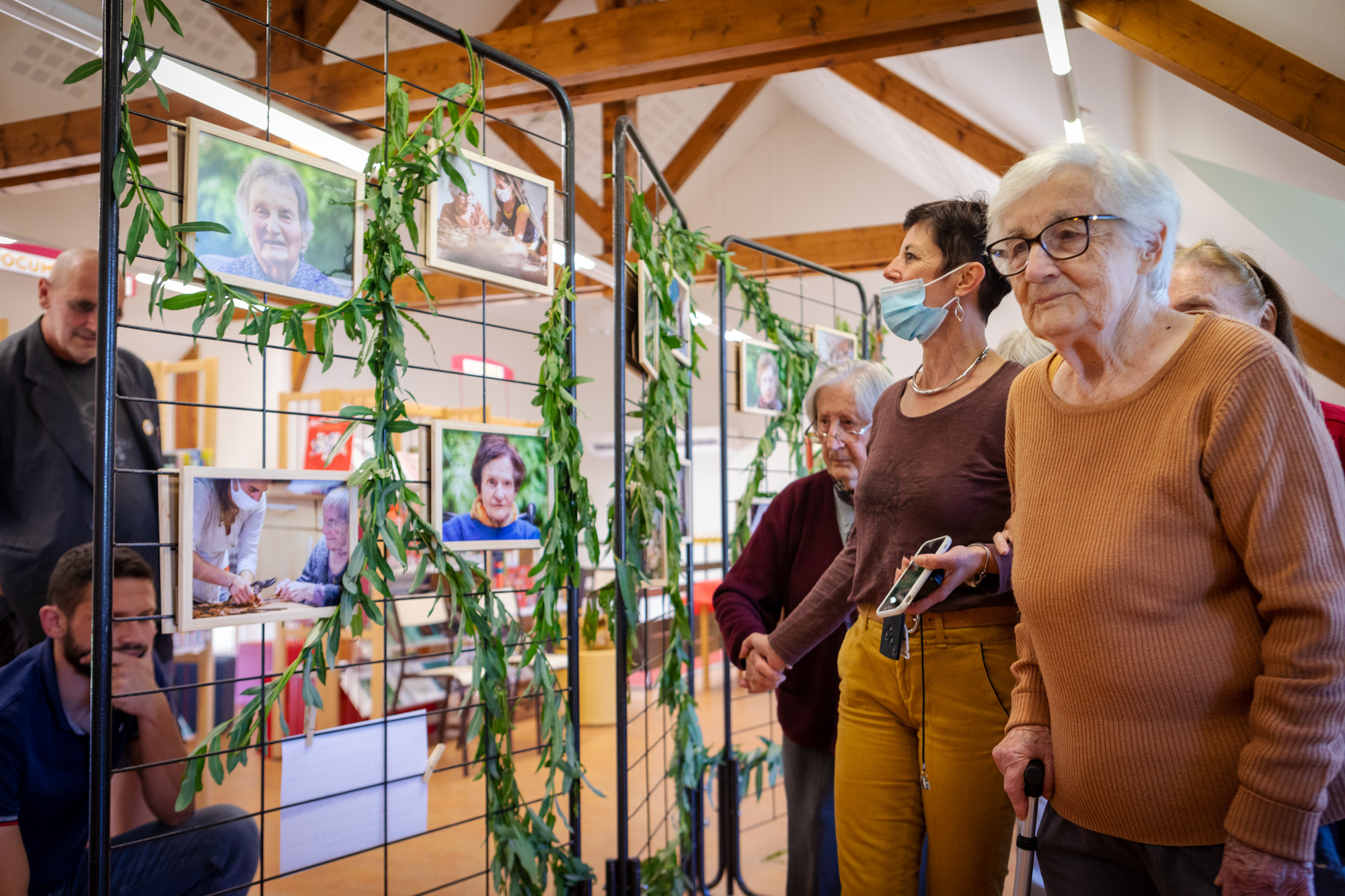 Une partie de l’exposition est consacrée à l’activité de vannerie et l’autre à une série de portraits des résidents. Ces deux intervenants proposent aux résidents des moments de partage, de coopération, voir des moments d’échanges individuels avec le photographe. Ces instants se concrétisent par un portrait. Certains portraits sont illustrés d’une phrase, d’une pensée exprimée par le résident lui-même, en évoquant des moments forts de leur vie, le temps d’une photo . Le but étant d’immortaliser et valoriser la vie quotidienne au sein de l’Ehpad Les Pradels.
